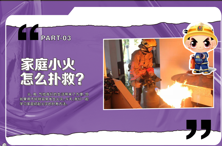 广东省消防救援总队针对不同人群、不同需求、不同生活场景,设计制作了创业篇、出行篇、居家篇、火灾案例警示篇、漫画篇等5类场景的消防安全知识指导手册,《手册》不仅有可印刷的图书版本,同时还制作成H5线上交互式版本,大家可以点击各个场景的链接,随时随地获取和浏览学习。让我们一起牢记消防安全,共同守护平安家园。